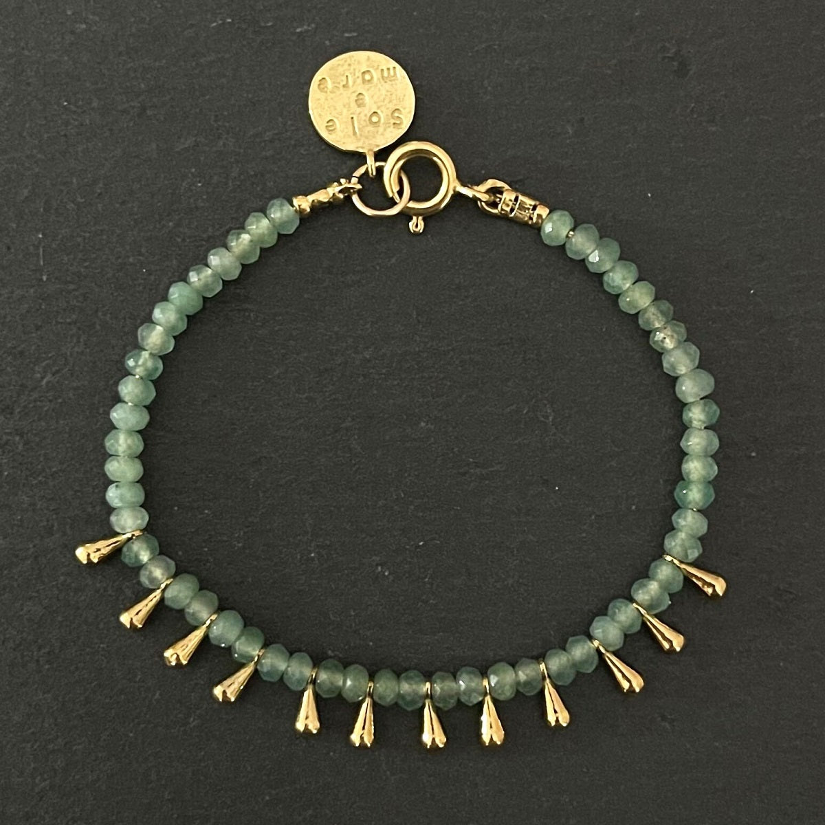 מיוצר בעבודת יד מכסף 925 בציפוי זהב מיקרוני היפואלרגני עמיד ואיכותי וחרוזי ג׳ייד בצבע אמרלד בהיר.