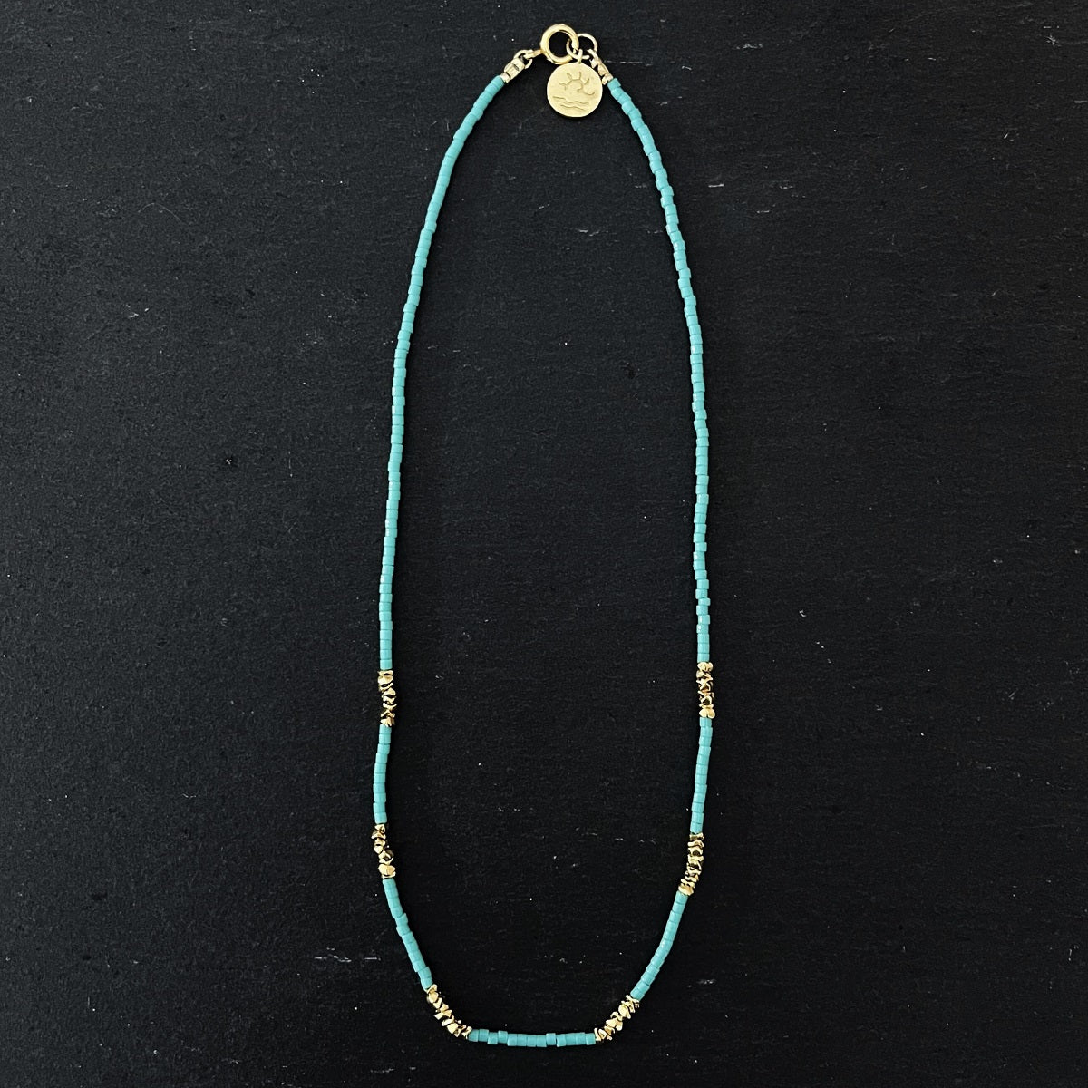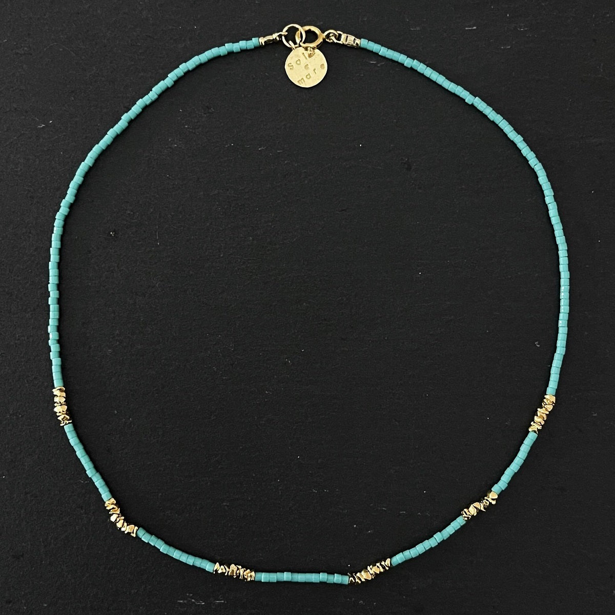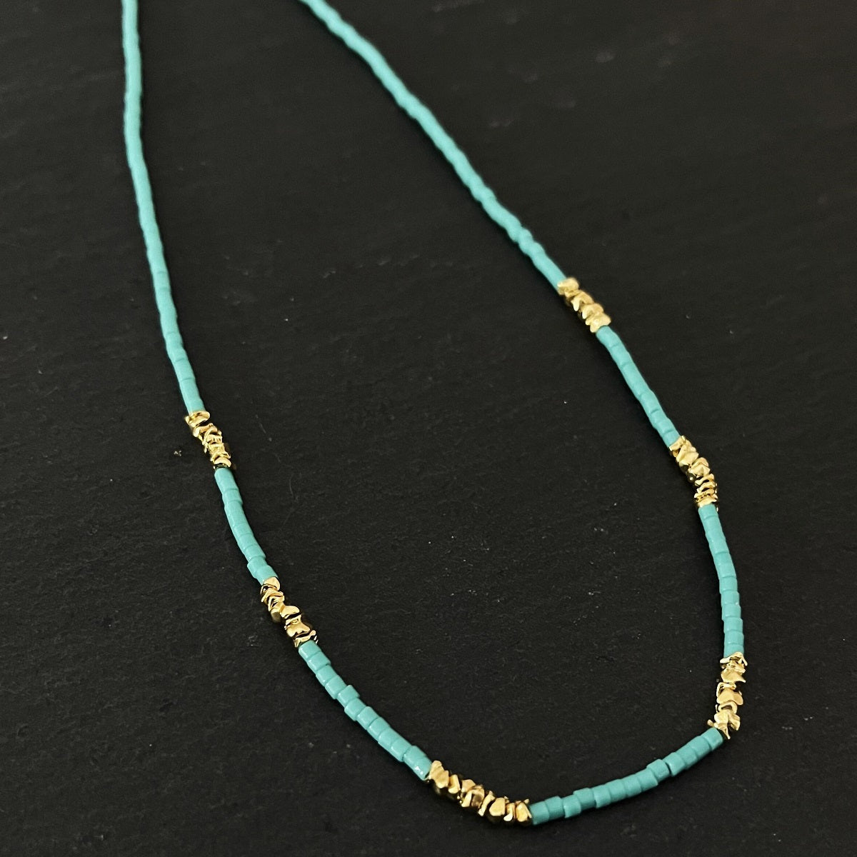 מיוצרת בעבודת יד מכסף 925 בציפוי זהב מיקרוני היפואלרגני עמיד ואיכותי וחרוזים יפנים בצבע טורקיז.