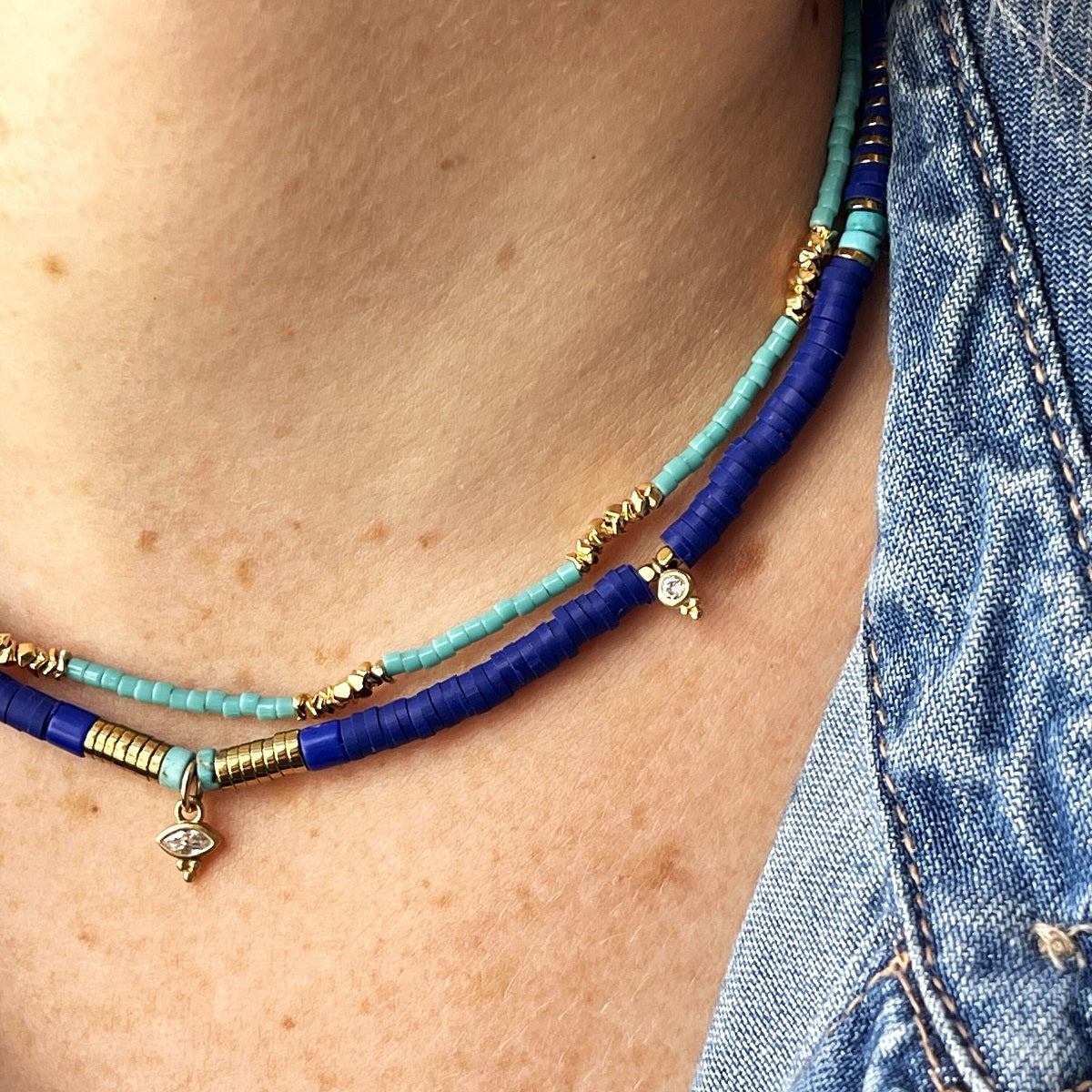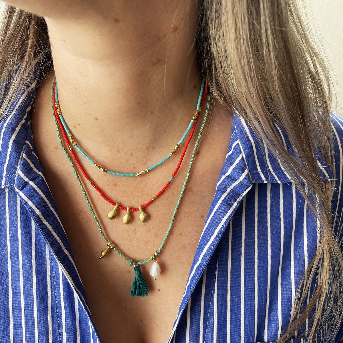 שרשרת צבעונית, קלילה ועדינה. בהשראת הצבעוניות השמחה של ברזיל. מושלמת לבדה או בשילוב עם כל שרשרת שתבחרי לענוד.